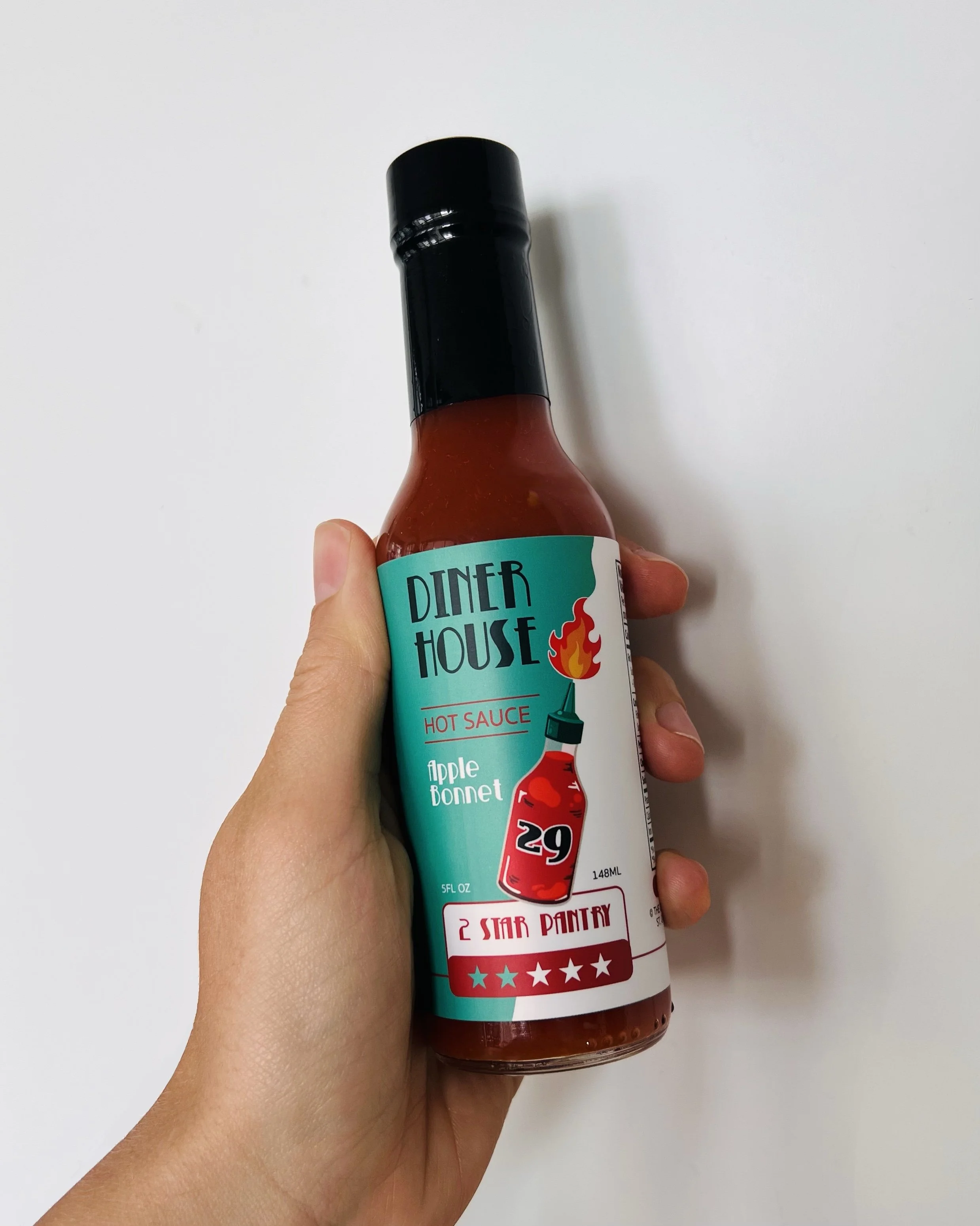 The Diner House 29 approached Hoovprints with a project to amplify the branding of their homemade hot sauce – an apple + scotch bonnet medley that has been flying off their shelves for years – which had previously been packaged in nondescript mason jars.